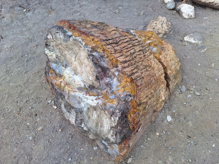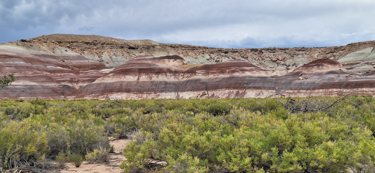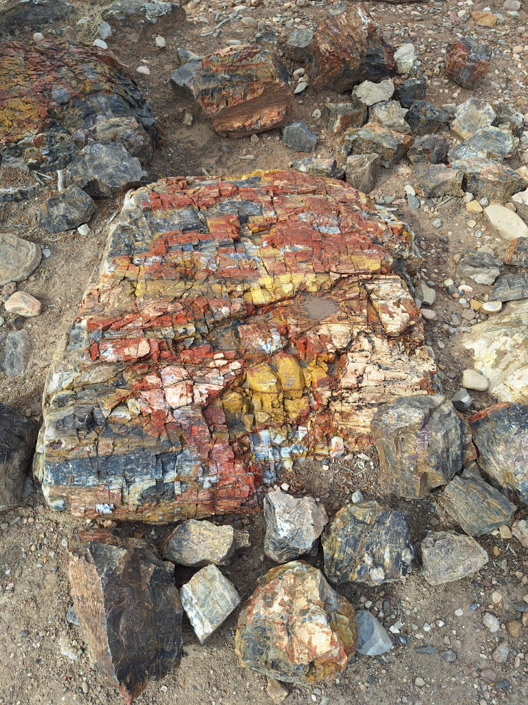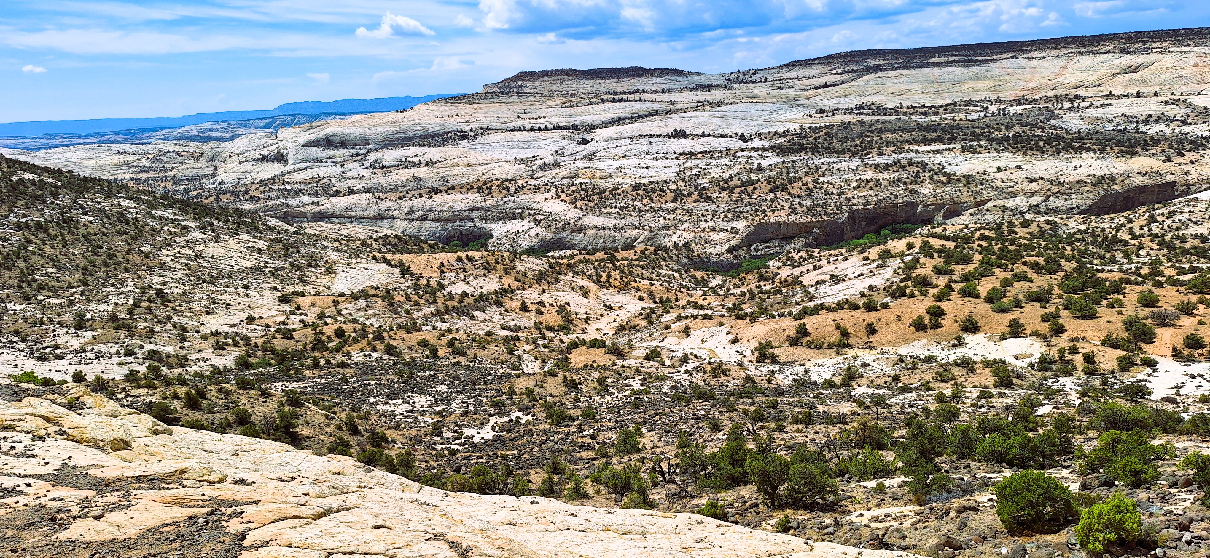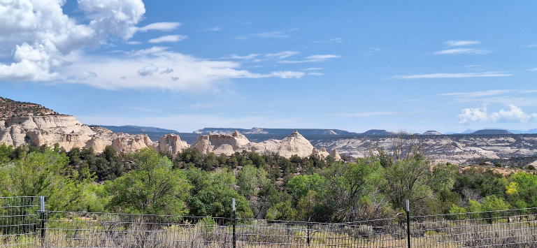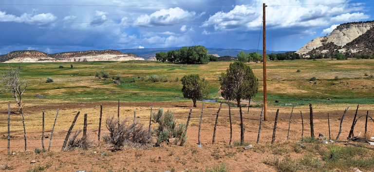 Das Wetter hat sich beruhigt und wir geniessen die Fahrt über die Boulder Mountains und den 3000 MüM liegenden Pass. Beim Dorf Boulder besuchen wir das Anasazi State Museum mit feinen Arbeiten der frühen Indigenen Kultur. Die Anschliessende Fahrt über den Head of the Rocks hinunter nach Escalante ist toll. Hier können wir Einkaufen und ein sehr netter Garagist wechselt den festgeklebten Ölfilter. Es gibt eine rechte Sauerei und natürlich ein abschätziges Kopfschütteln über die eigene Zunft. Danach suchen wir uns ein Plätzli im nahen Petrified Forest State Park. Da sich das Wetter von der guten Seite zeigt, unternehmen wir noch einen Marsch hinauf in die Welt der versteinerten Bäume. Dabei macht sich mein Knie unerfreulich bemerkbar, ich hoffe und greife zu Salbe und Tabletten.