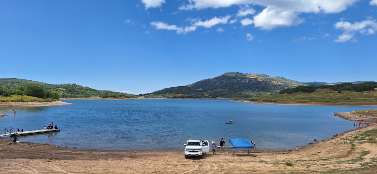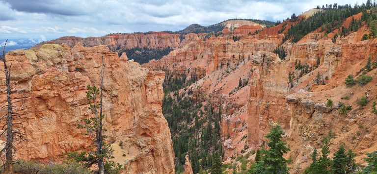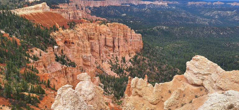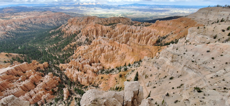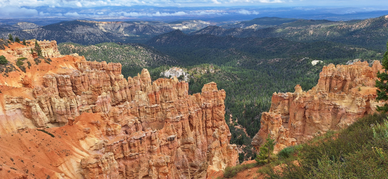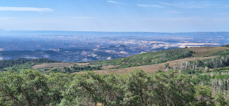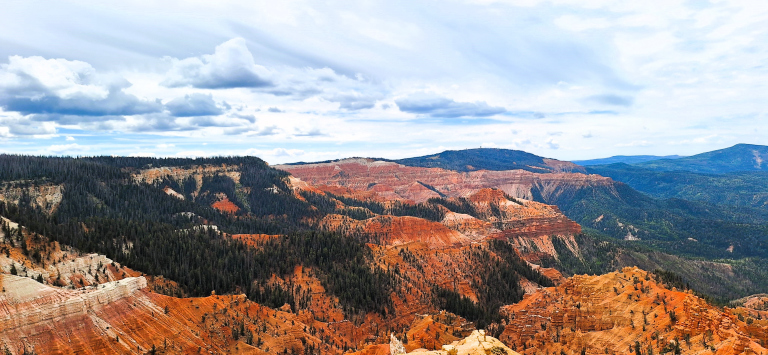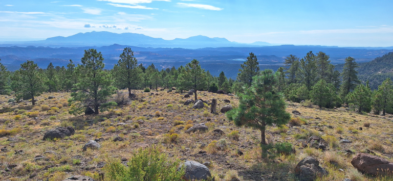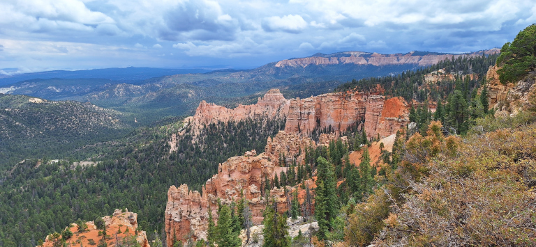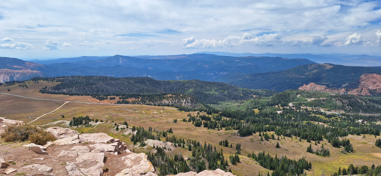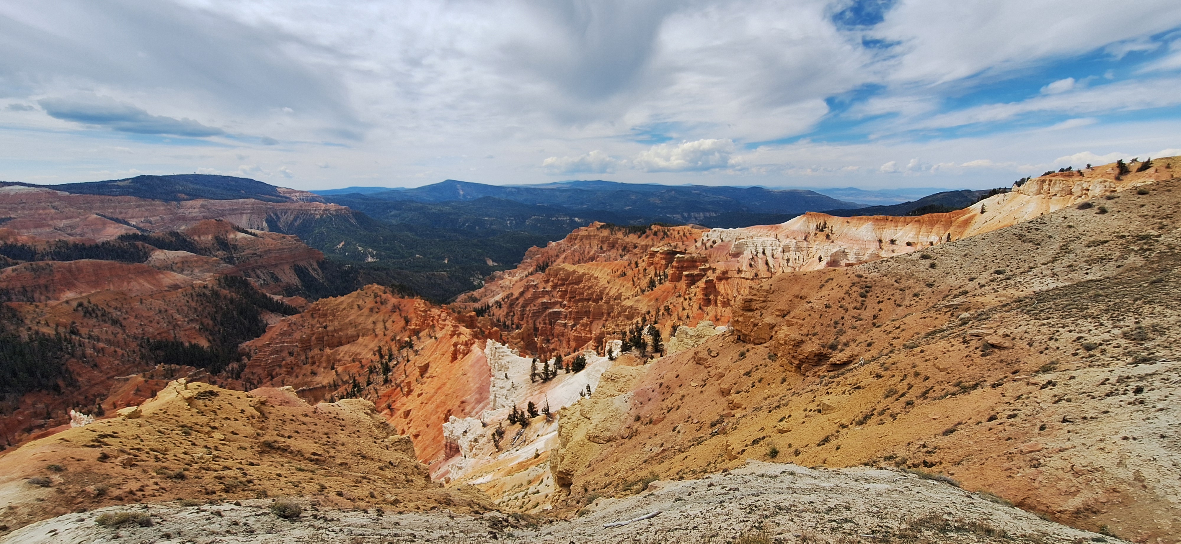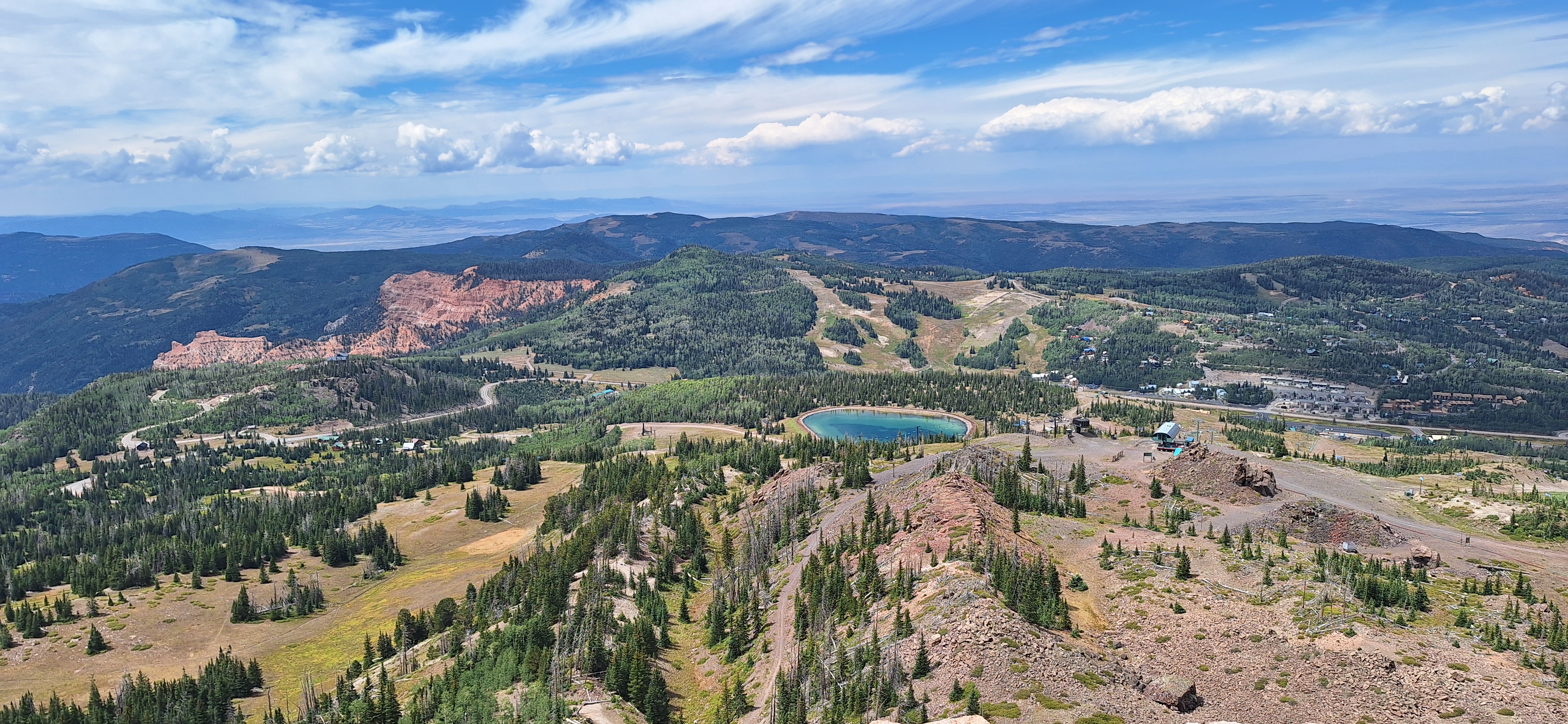 Der Aussichtsreiche Highway 12 geht in Panguitch zu Ende. Wir fahren hinauf zum gleichnamigen See und sind schon wieder sehr beeindruckt. Der gleichen Meinung ist Roger, er hat unser Schweizerkreuz erkannt und als “Heimweh Schweizer” fragt er natürlich nach dem woher und wohin. Der Wahlkalifornier kann nach 40 Jahren einige gute Typs geben. Den ersten setzen wir gleich um und suchen die Piste hinauf auf den 11'307ft. ca. 3'422 Meter hohen Brian Head. Gewaltig, die Rundsicht! Wir sind noch nie mit dem Auto höher als die Bergstation eines Skigebietes gefahren! Die letzten zwei Höhenmeter hinke ich noch zu Fuss, denn ein Gipfelfoto ist ein muss. Von hier oben erkennen wir auch die grosse Schafherde die von Schäfern mit Pferden und Hunden unter Kontrolle gehalten werden. Eintausend Höhenmeter tiefer Übernachten wir für null im Dixi National Forest. Es ist schon super, dass der Staat Plätze zum frei stehen anbietet! Entsprechend ist auch etwas los, unzählige ATV brausen mit Camping Gepäck vorbei, tiefer in den Wald.