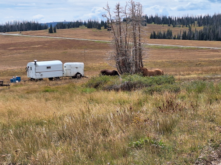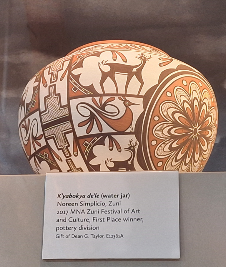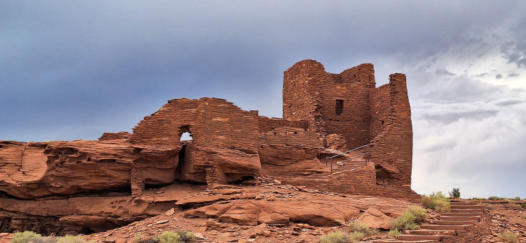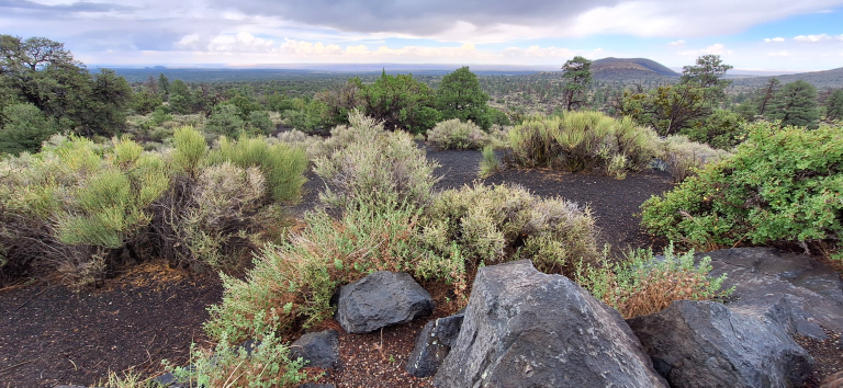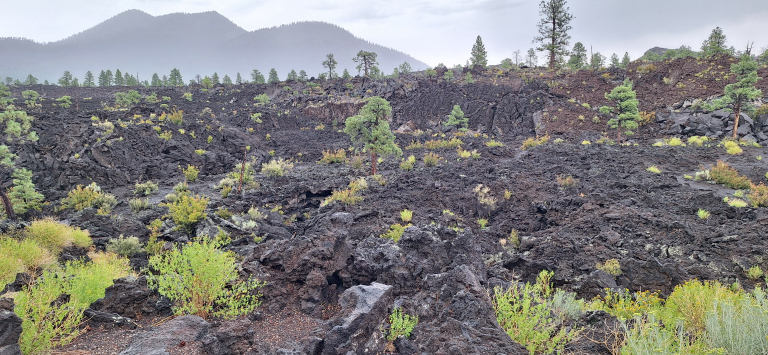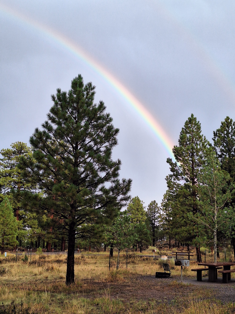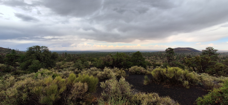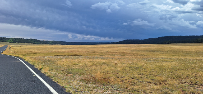 Es ist Monsunzeit, wie sie hier sagen und auf dem Hochplateau um 1800 MüM recht kühl. So leisten wir uns ein richtig amerikanisches Frühstück. Die Eier mit Speck und Bratkartoffeln halten den ganzen Tag, aber na ja… Im Museum von Northern Arizon in Flagstaff können wir uns an der Handwerkskunst der Indigenen begeistern. Insbesondere das Volk der Zunis sticht da heraus! Bis heute werden wundervolle Vasen und Stickereien von ihnen hergestellt. Das Sunset Volcanic NM entführt uns wieder in die bebende Urzeit. Das Wupatki NM zeigt Festungsbauten die in etwa gleich alt wie die Stadt Bern sind. Es bezeugt die Umwälzungen, die eine erbauen von Festungen erforderlich machten. Im Süden von Flagstaff, beim Mormon Lake, beschliessen wir den Tag. Erstaunlich, auf dem Plateau sind ein paar Seen, die aber kein offenes Wasser mehr enthalten, sondern überwachsene Sümpfe. Die Pferde und Rindviecher freut’s.