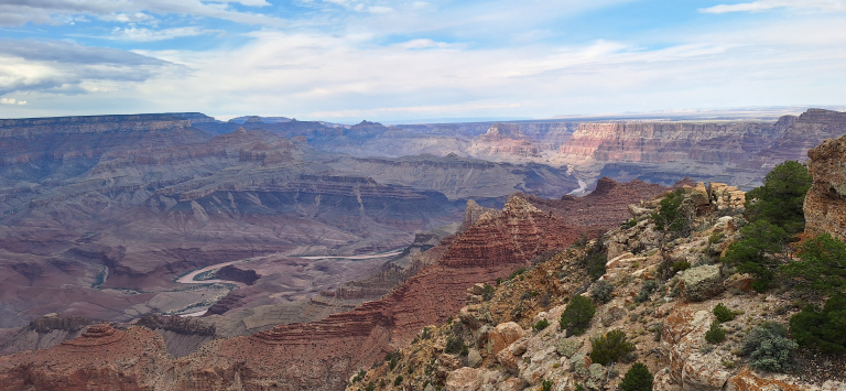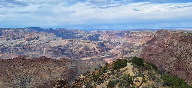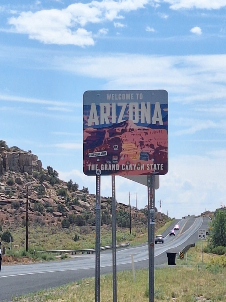 Entlang der nicht enden wollenden Vermillion Cliffs, Marbel Canyon, Limestone Ridge und durch die Paintet Dessert führt uns der Highway 89 nach Cameron. Eine Wunderschöne und interessante Fahrt, die ihren Höhepunkt an der South Rim des Grand Canyon findet! Wirklich ein Gottesgeschenk dieser Tag! Der grosse Touristenandrang führt dazu, dass wir keinen Platz finden für die Nacht. So müssen wir weiter nach Süden fahren und können im NF bei Tusanyan sogar einen gratis Platz ergattern.