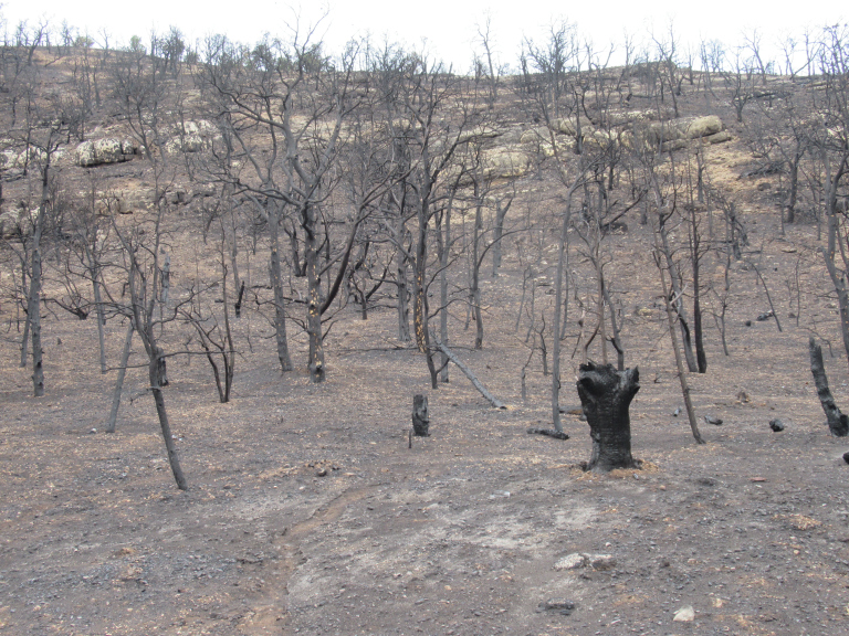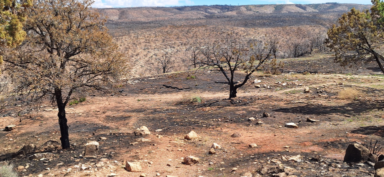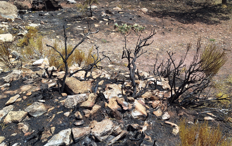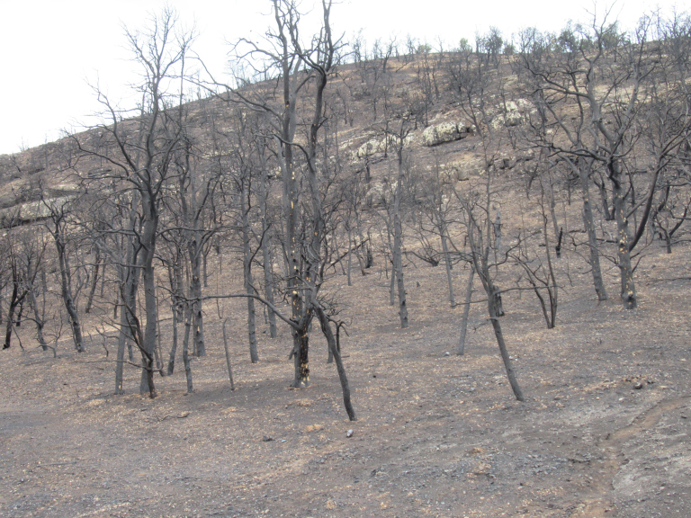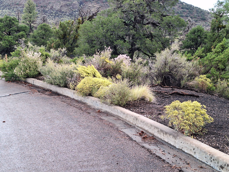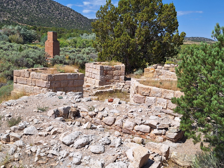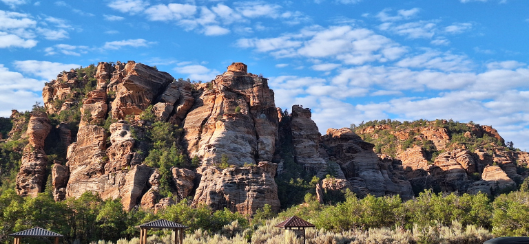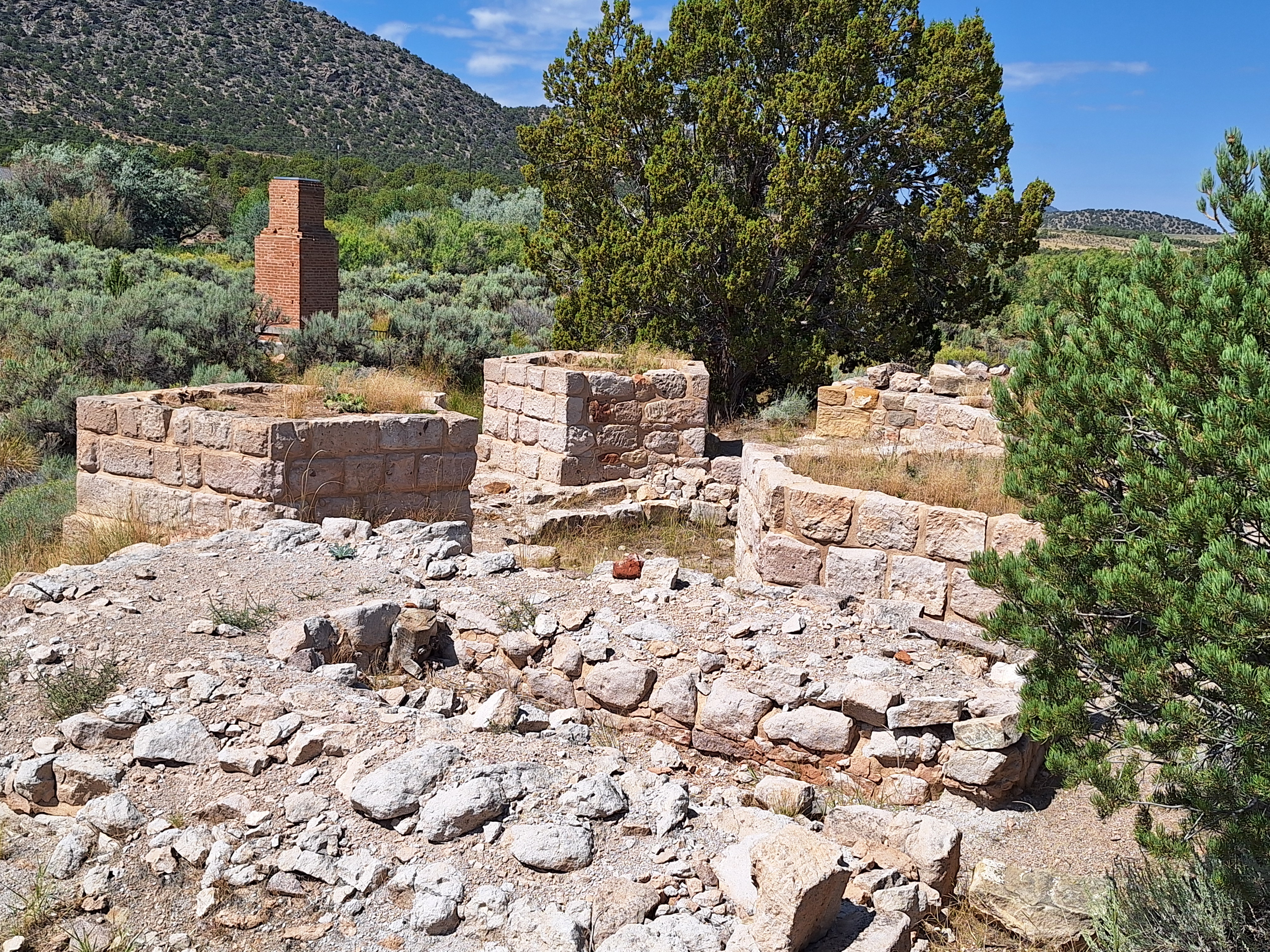 Das “gratis” Übernachten musste natürlich anderweitig erkauft werden. Gerade zwei Hochzeitspärchen machten am Abend einen Apéro an “unserm” schönen Plätzli… Seis drum, wir kommen ausgeruht aus dem Park und fahren über Hurricane zur Interstate 15. Diese führt uns Nordwärts, über Pintura zum Nordeingang des Zion NP. Dieser Eingang führt in den Kolob Canyon, wieder eine eindrückliche Schlucht, die nur von der Nordseite aus erreichbar ist. Auf der Interstate müssen wir weiter nach Norden, bis in die Typische Verwaltungsstadt Cedar City. Die 56er führt uns nach Westen, zum alten Eisenabbaugebiet von Iron Town. Da gibt es eine alte Eisenschmelze zu bewundern, in deren Schlund ganze Wälder verschwunden sind. Eine “modernere” Mine musste 1980 den Betrieb einstellen. Die Arbeiter werden wohl kaum alle auf den Farmen des Iron Bezirks wieder Arbeit gefunden haben. In Beryl Junction geht es auf dem kleinen Highway 18 nach Süden in den Dixi National Forest. Kurz nach der Ortschaft Enterprise kommen wir an eine Gedenkstätte eines Massakers. Die Mormonen und Paiute Indigenen haben hier einen Wagenzug von Siedlern, die auf dem Weg nach Kalifornien waren, Überfallen. Von den 140 Menschen haben nur ein paar Kinder überlebt, alle über sechs Jahren wurden abgeschlachtet und ihre Habe geraubt. Die US Kavallerie konnte nur dem weissen Rädelsführer vor Gericht bringen, er wurde am Galgen hingerichtet. Wir mussten die Absicht auf dem Campground von Pine Valley zwischen den schönen Bergen zu Übernachten schnell aufgeben. Das von Pinien bewachsene Tal ist vor ein paar Wochen einem Brand zum Opfer gefallen. Das Feuer konnte erst kurz vor dem Ort gestoppt werden. Also wieder zurück auf die 18er und sich im NF in die Büsche schlagen.