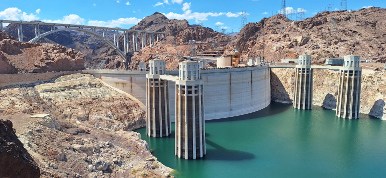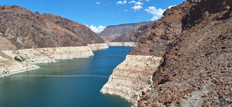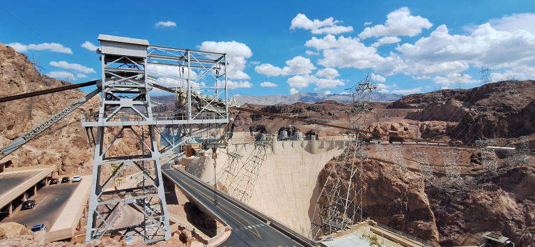 Nach der traumintensiven Nacht an der Route 66, in Kingman, ist Schluss mit durch die Gegend gondeln. LKWs und solche die es gerne währen, jagen einem gnadenlos auf dem Highway 93 nach Norden. Ein sonderbares Gefühl, wenn ein LKW mit 120km/h an einem vorbei donnert! Ohne Rücksicht auf den sehr schlechten Strassenbelag zu nehmen. Bis heute haben wir nur im Sudan eine solche Menge an zerfetzten Reifen am Strassenrand gesehen! Am Hoover Dam, nach der gigantischen neuen Brücke, biegen wir ab ins Besucherzentrum. Hier ist alles neu und wohl geordnet, auch der Sicherheitscheck der Wachmannschaft. Nach genauer Sichtung unseres Dodgli und der obligaten Frage nach Waffen und Sprengstoff dürfen wir auf den Parkplatz fahren. Die Amis sind der Meinung, die Terroristen würden freundlich ihr Arsenal anmelden ;-) Trotz der 40°C sind wir nicht alleine am Industriebau bewundern! Es ist jedoch erschreckend, wie wenig Wasser sich im Lake Mead befindet! Dann sind wir schnell in Las Vegas und es ist gefühlt noch wärmer. So ziehen wir gleich durch in die Höhe, unter den Charlestone Peek. Hier im Top Hill Campground, auf 2500 MüM, ist es Angenehm kühl und die Pinien rauschen im Abendwind.