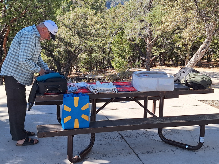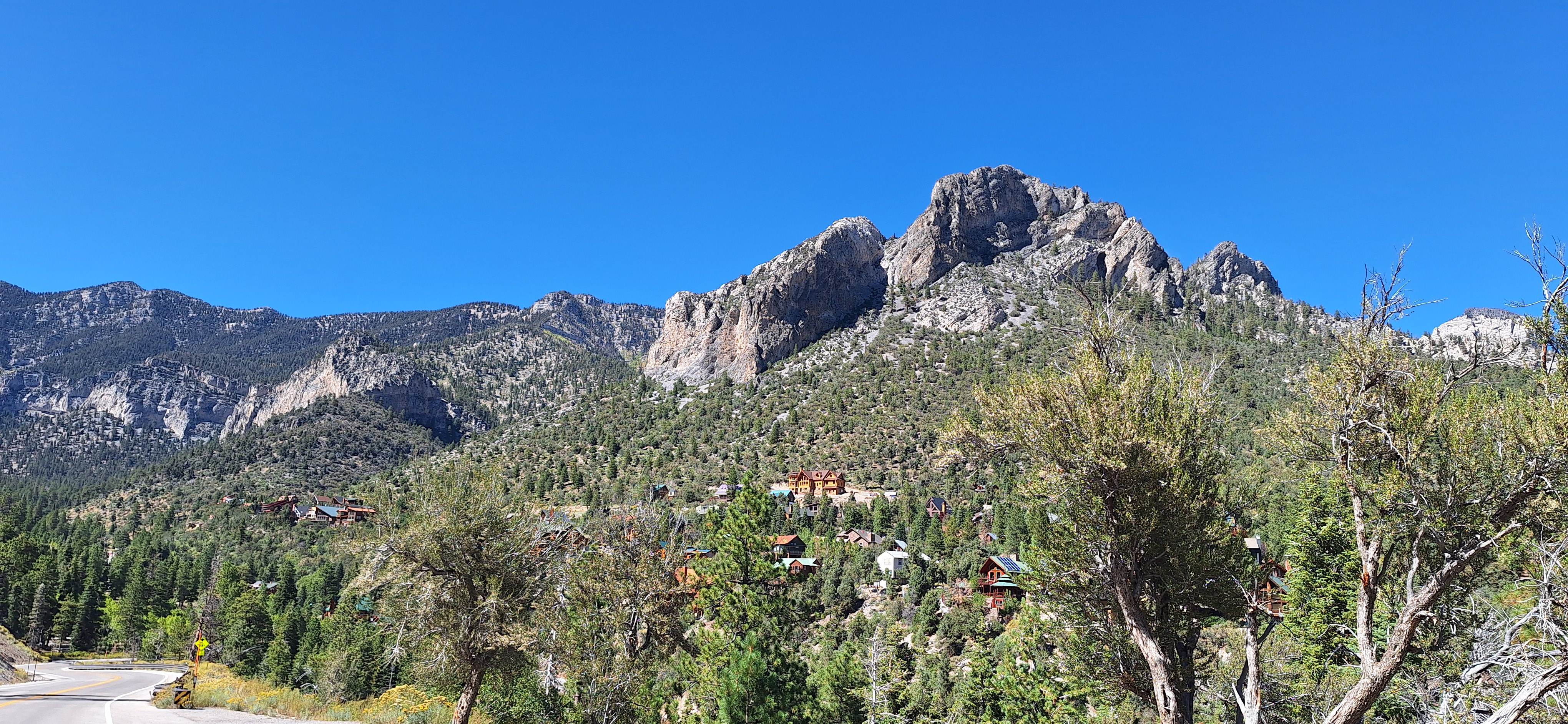 Etwa eine Stunde brauchen wir, um den vorgebuchten KOA Campground in Las Vegas zu erreichen. Jetzt wird es ernst mit den Vorbereitungen für das einstellen des Dodgli. Theres lässt die Waschmaschinen und Tumbler rotieren, ich passe auf und stehe im Weg ;-) Gegen Mittag sind wir mit dem Programm durch und fahren für die letzten Einkäufe zum Walmart. Wir bereuen es sehr, den Platz reserviert zu haben, denn es wird ab Mittag auf dem schattenlosen Gelände vom KOA unerträglich heiss. Schnell orientieren wir uns um, da der Platz im NF am Berg relativ wenig kostet leisten wir uns den Luxus wieder in die Höhe zu fahren um die nächsten 24 Stunden im angenehmen Bergwald zu verbringen.