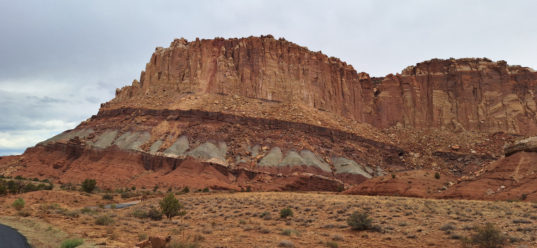 Heute Morgen ist es bewölkt und recht kühl, also ideal um als erstes das Motorenöl zu wechseln. Das klappt dann recht gut. Leider haben die Jungs beim letzten Wechsel die Ablassschraube und den Ölfilter mit Schraubenkleber gesichert. Die Schraube konnte ich mit Gewalt öffnen, beim Filter ging gar nichts, also in einer Garage lösen lassen. Danach brechen wir auf, um eine schöne Scenic Tour im Nationalpark abzufahren. Eine angeblich leichte Wanderung zur Hickmen Bridge müssen wir wieder einmal abbrechen, zu schlecht der Weg und vor allem viel zu heiss jetzt ohne Bewölkung. Wie schon so oft in den letzten Tagen bemerkt, ist es auch hier unglaublich schön und eindrücklich. Die Mormonen suchten ein einsames Land um dem Religionshändel zu entfliehen. Sie fanden es, zugleich aber die Landschaftlich wohl eindrücklichste Gegend der USA! Kein Staat hat eine solche Dichte von National und State Parks wie Utha.